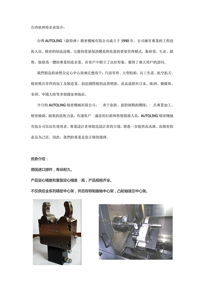 臺(tái)灣歐特林液壓中心架